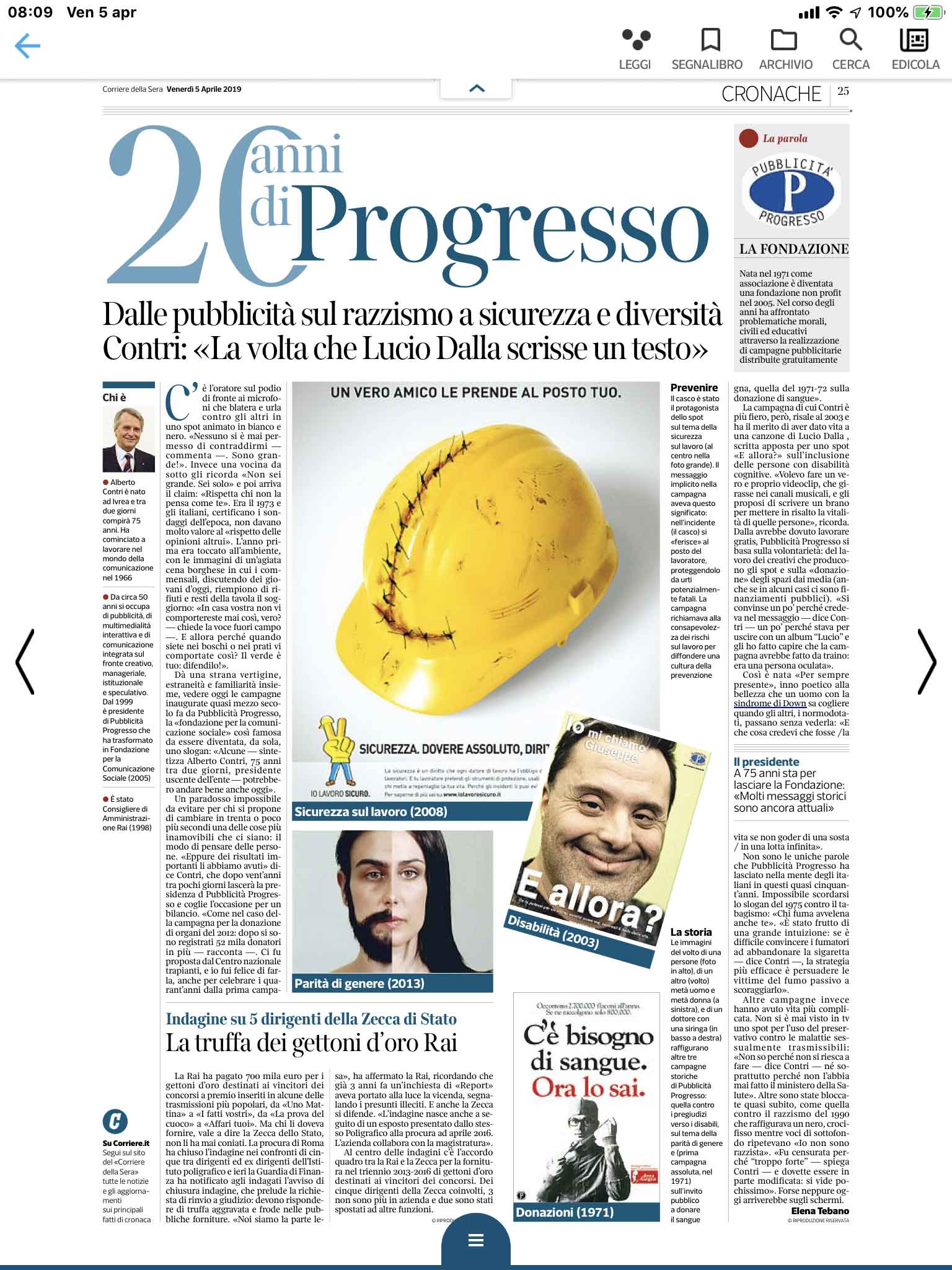 Intendo esprimere tutta la mia gratitudine ad Alberto Contri e a Pubblicità Progresso per il