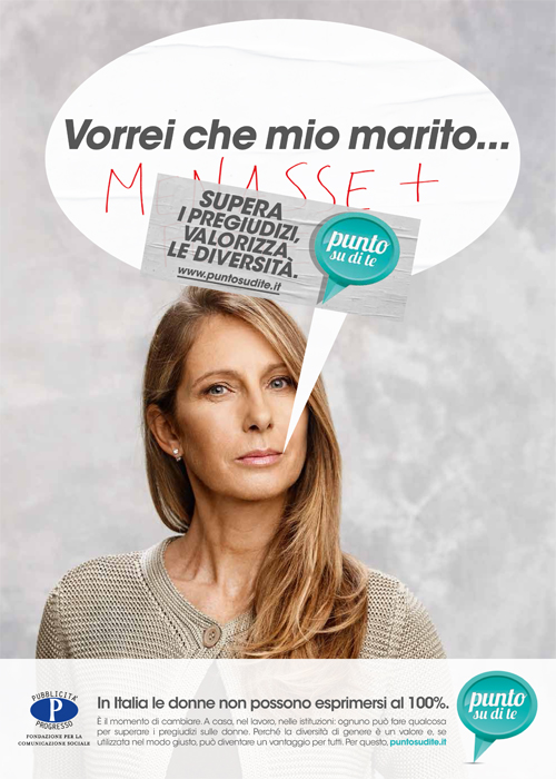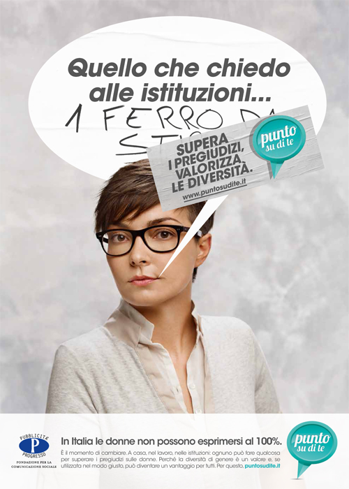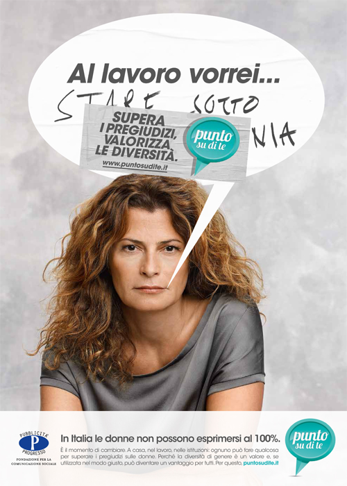 Quando decidemmo che era venuto il momento di fare una campagna per la parità di genere, dopo un viaggio nella nostra Mediateca internazionale ci rendemmo conto che avremmo dovuto sfuggire dalla solita retorica, e soprattutto creare un servizio che portasse a risultati concreti a favore delle donne. La fortuna volle che l’agenzia di turno fosse la Young & Rubicam, il cui direttore creativo allora era Vichy Gitto. Che non si tirò certo indietro di fronte alla richiesta di pensare in grande.