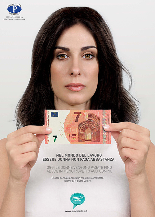 Ulteriormente rafforzata da una campagna stampa in cui una donna esibiva una banconota da 10 euro con la scritta 7.
